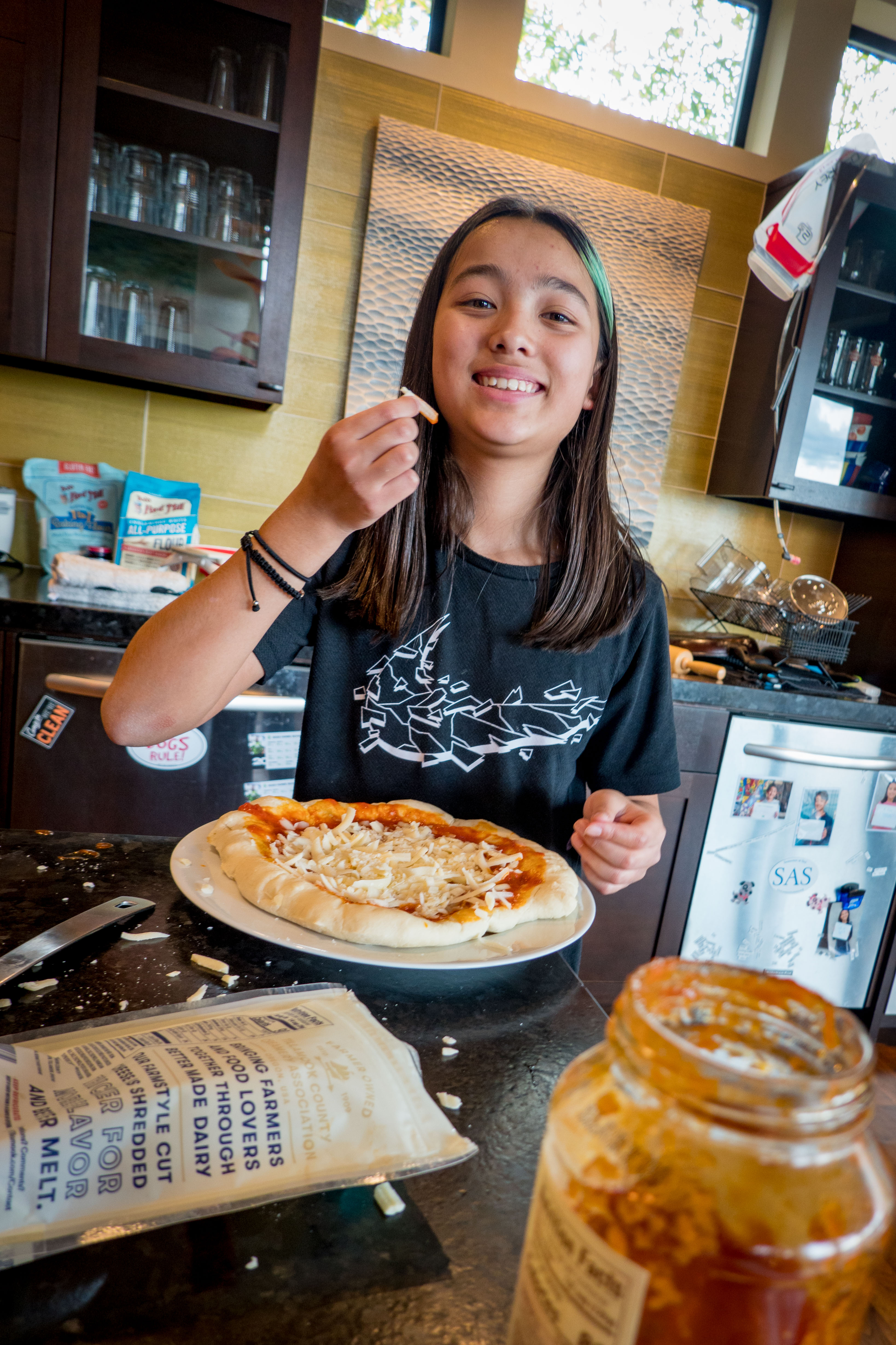 Another thing I made was pizza. I had premade dough, thanks to the Shields, but still cooked it and put toppings on it. I rolled up the dough and flipped it into the air just like they do it professionally. I made my crust extra thick and added a ton of extra cheese. The pizza was almost as good as deep dish pizza, which I love, and I would enjoy making it again.