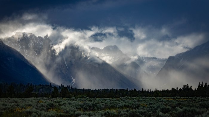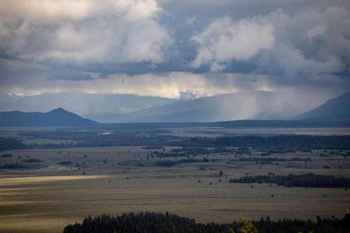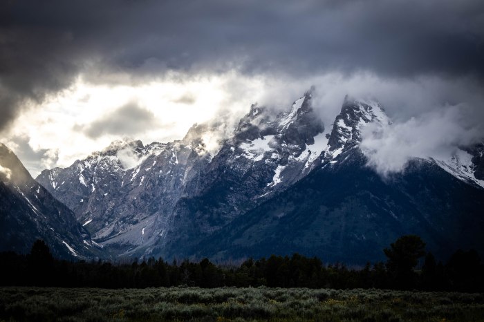 We’d had clear blue skies for 5 days in Yellowstone. But the forecast for Grand Teton and Jackson, WY was …. clouds and rain. Would we end up seeing the mountains at all? And if they were shrouded in clouds… would that erode what we heard was their incredible majesty?