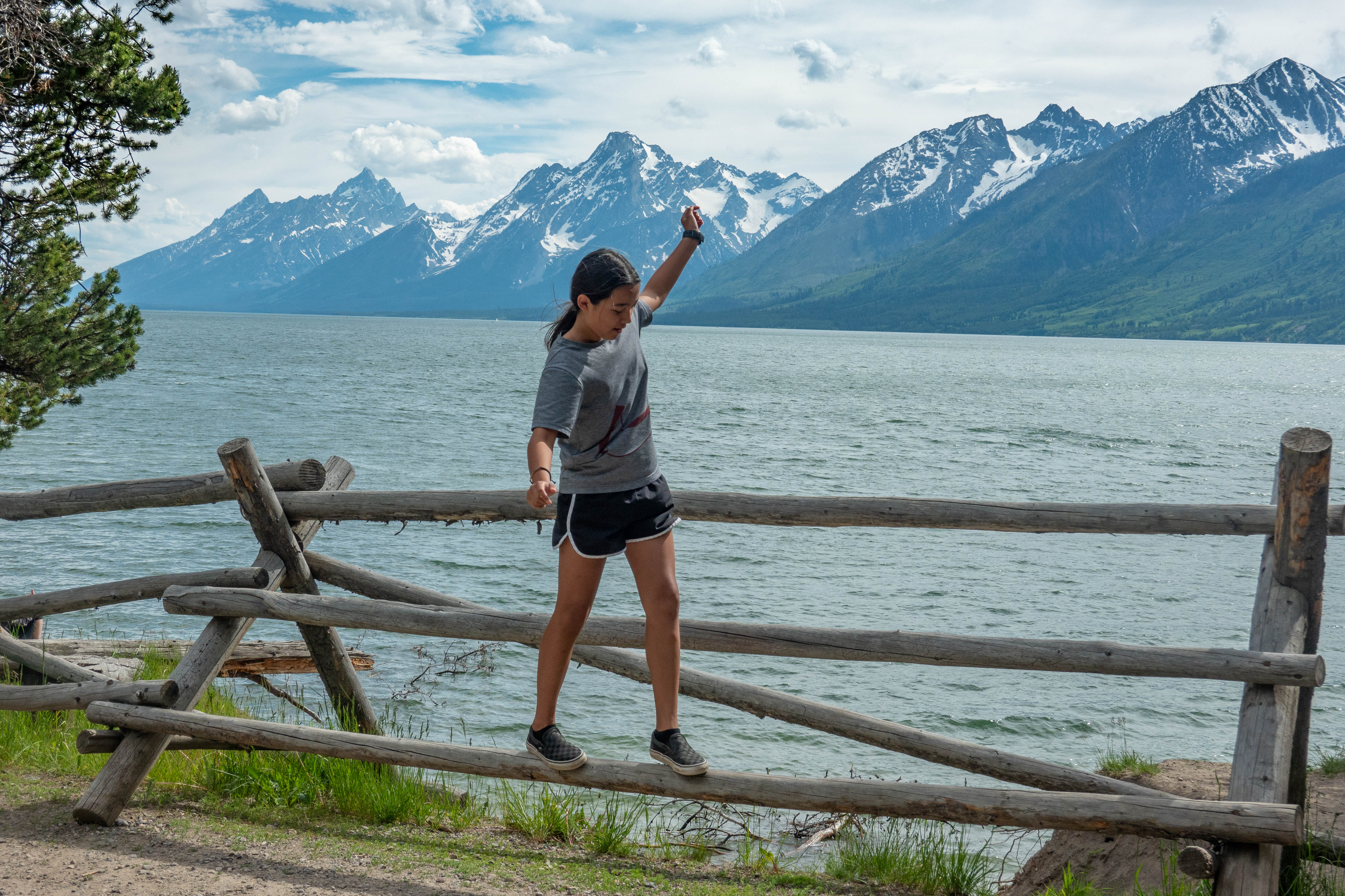 Just 20 minutes after one drives out of Yellowstone’s southern border, the Grand Tetons seem to spring out of the earth just across Jackson Lake and, with a gasp, take your breath away. We stopped the car immediately and more than once just to look…